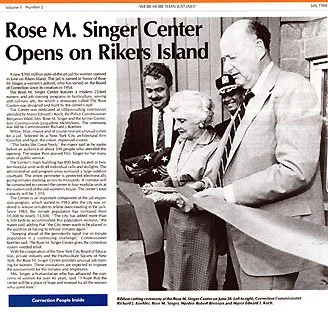News about the Rose M. Singer Center Opening on Rikers (NYC Department of Correction.)