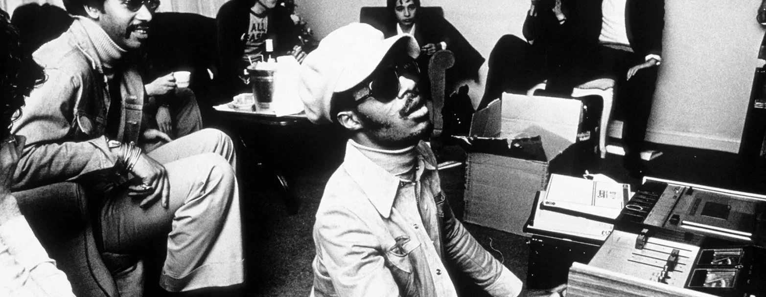 Stevie Wonder backstage at the Rainbow Theatre in London. Gijsbert Hanekroot, Getty Images.